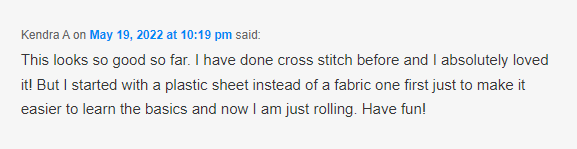 This app is very easy to use. The only part I am going to have trouble with is where it tells you the stitch and instructions on how to make something. I am going to have to do some research about what everything means and how to do a certain stitch. Bare with me during my learning project.
