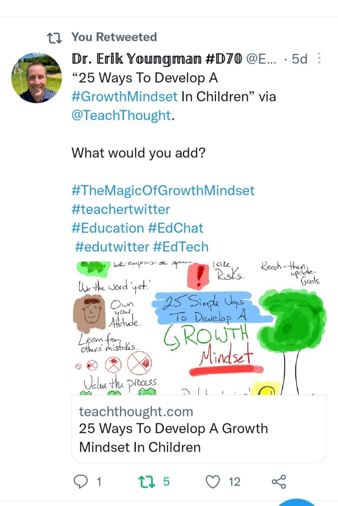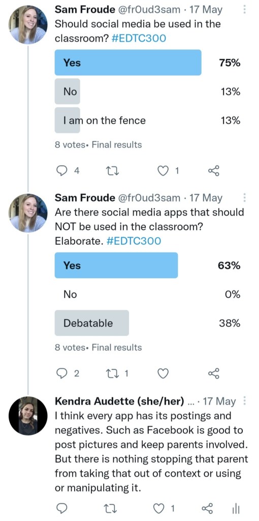 Below are many ways that I have contributed to the learning of others. Where I may have helped others on their learning projects for instance. Twitter comments and posts where I have questioned and answered other posts. These are just a few of the comments and posts I have made on blog posts and Twitter. Below you will find a comment on my Twitter feed that has an “A3” at the beginning. This post was for #SaskEdChat. This was a great experience to be a part of the Thursday Twitter chat to answer questions and read others’ responses.