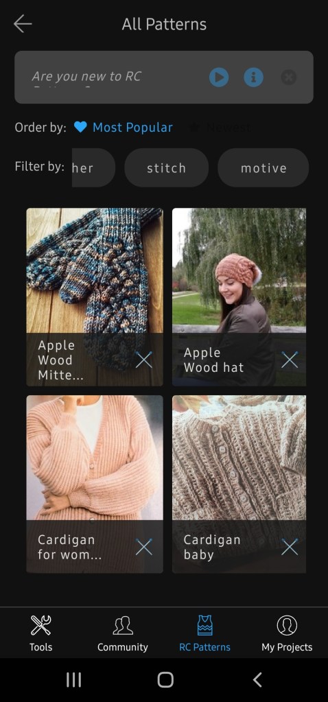 In this app when you open it, it has tools, community, RC Patterns, and my projects category at the bottom. When I first open it to the tools section. It will show you a bunch of helpful things to get started on your first project. I personally really like the Glossary where it gives you all the abbreviations and what it means.