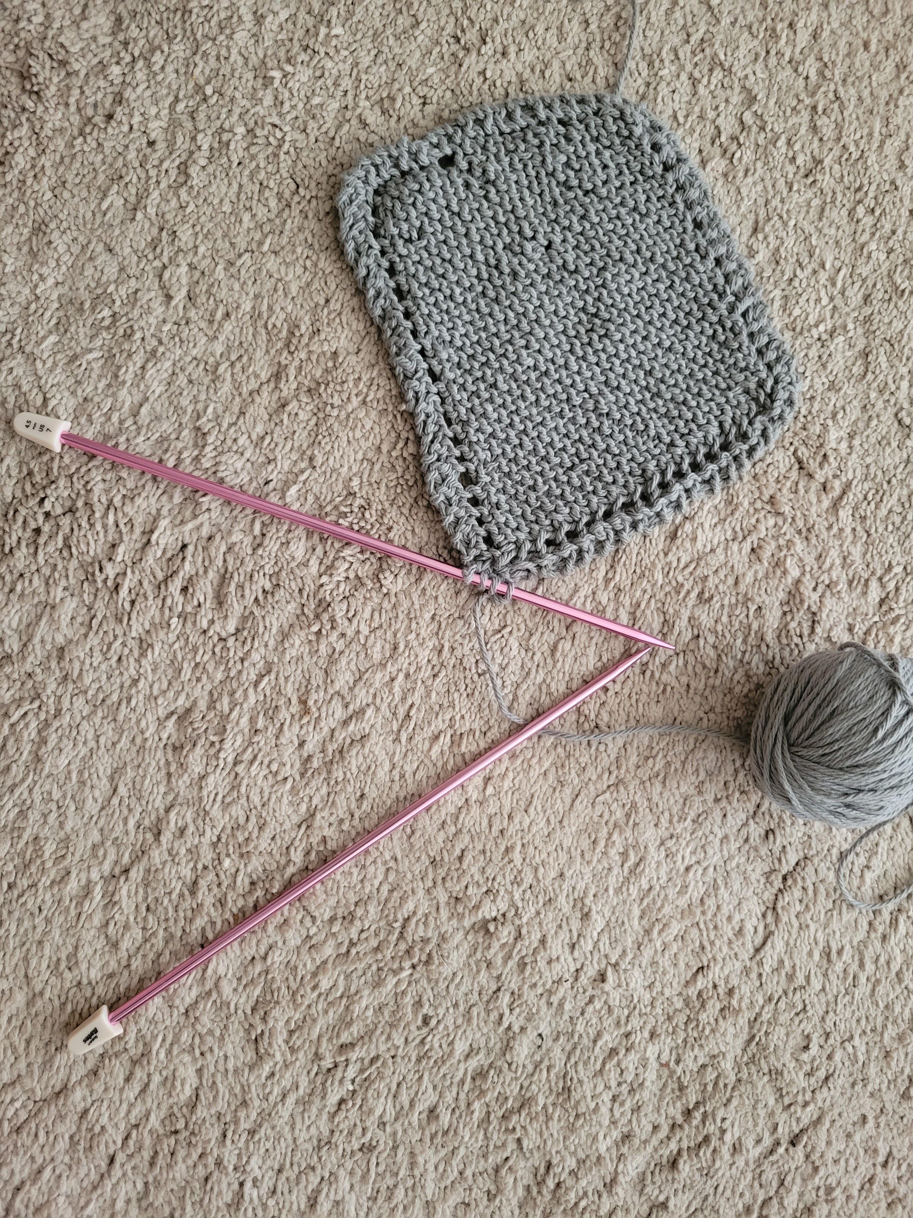 It has been an extremely busy week for me, but I took some time to almost finish my dishcloth. I still need more time and I am continuously working towards my end goal. I had to work on the other half of my dishcloth. As I was working towards the first half I was adding a stitch each time to get it bigger. Then I had to decrease my dishcloth by taking away a stitch. I learned the yarn over technique, which is where I start with two stitches and get to one stitch. This is how it ties together so it does not unravel. I also learned how to knit two stitches together. This process was a little difficult because I found it needed a little more attention so I didn’t miss something. If I would have missed a stitch or done it wrong it would have all come loose and then I would not be very happy, but everything worked out just fine and now I am here…